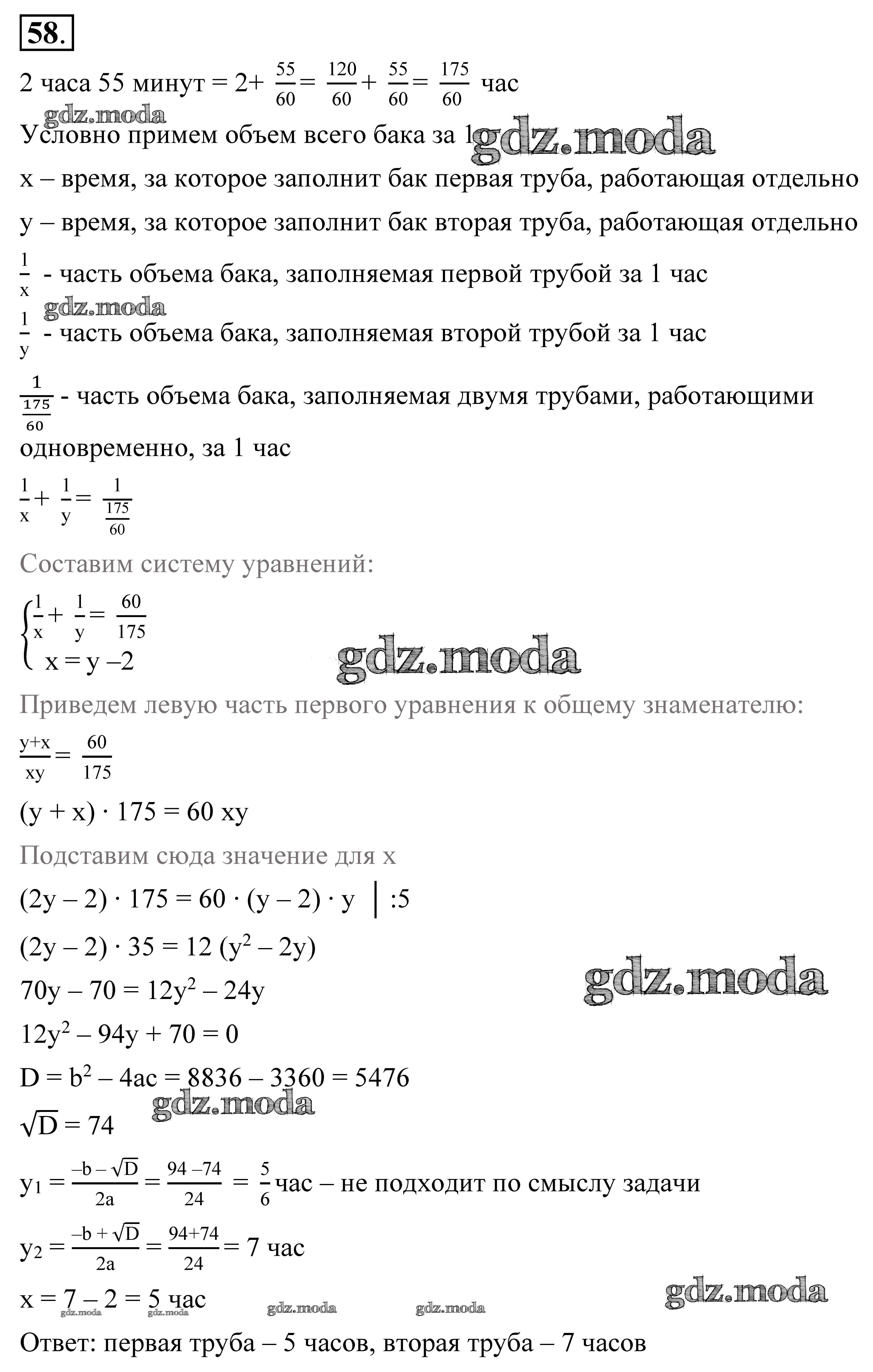 ГДЗ решение к заданию № 58 Алгебра 9 класс Алимов Ш. А. Просвещение 2014 ФГОС бесплатно на гдз.мода!