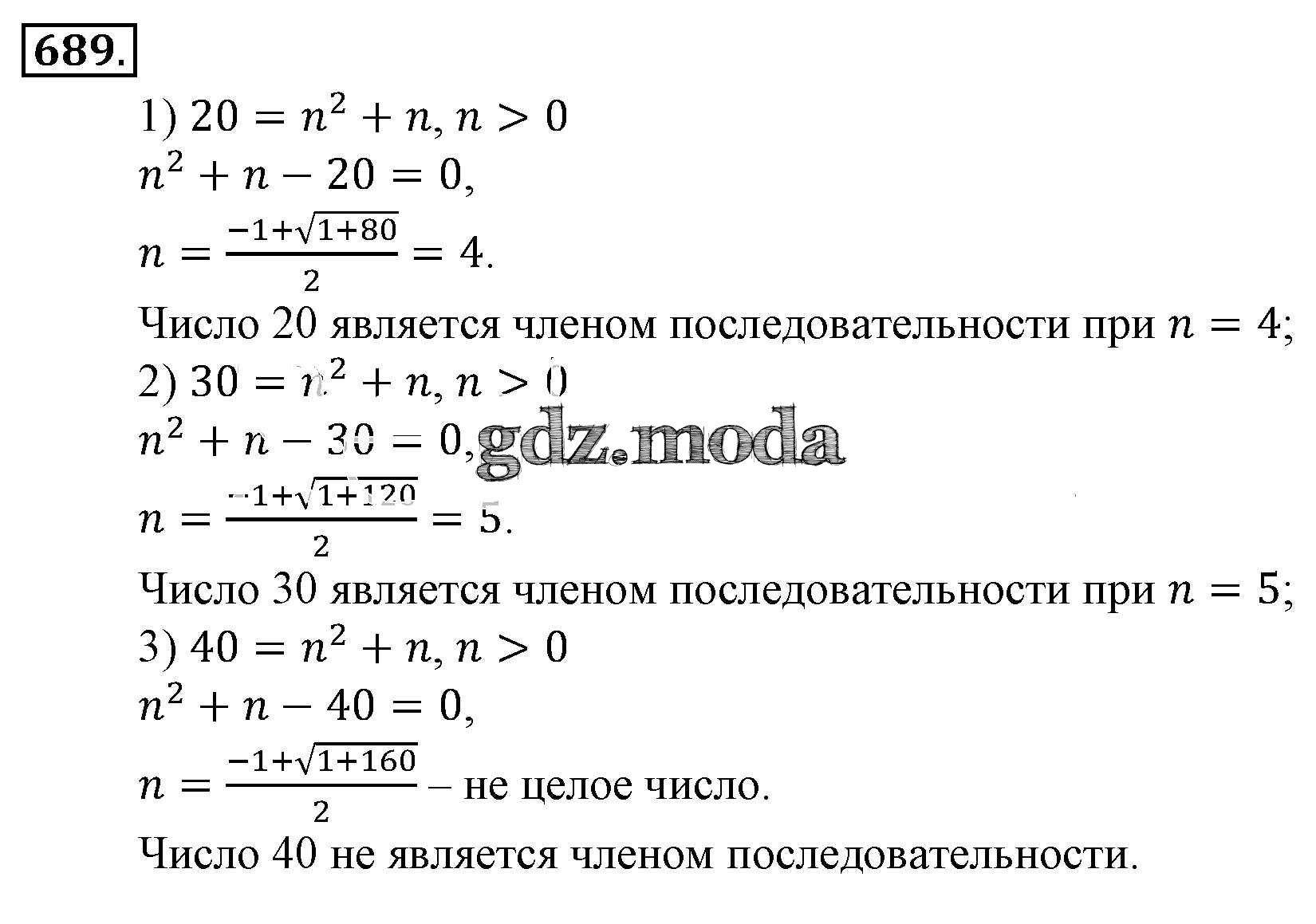 ОТВЕТ на задание № 689 Учебник по Алгебре 9 класс Алимов