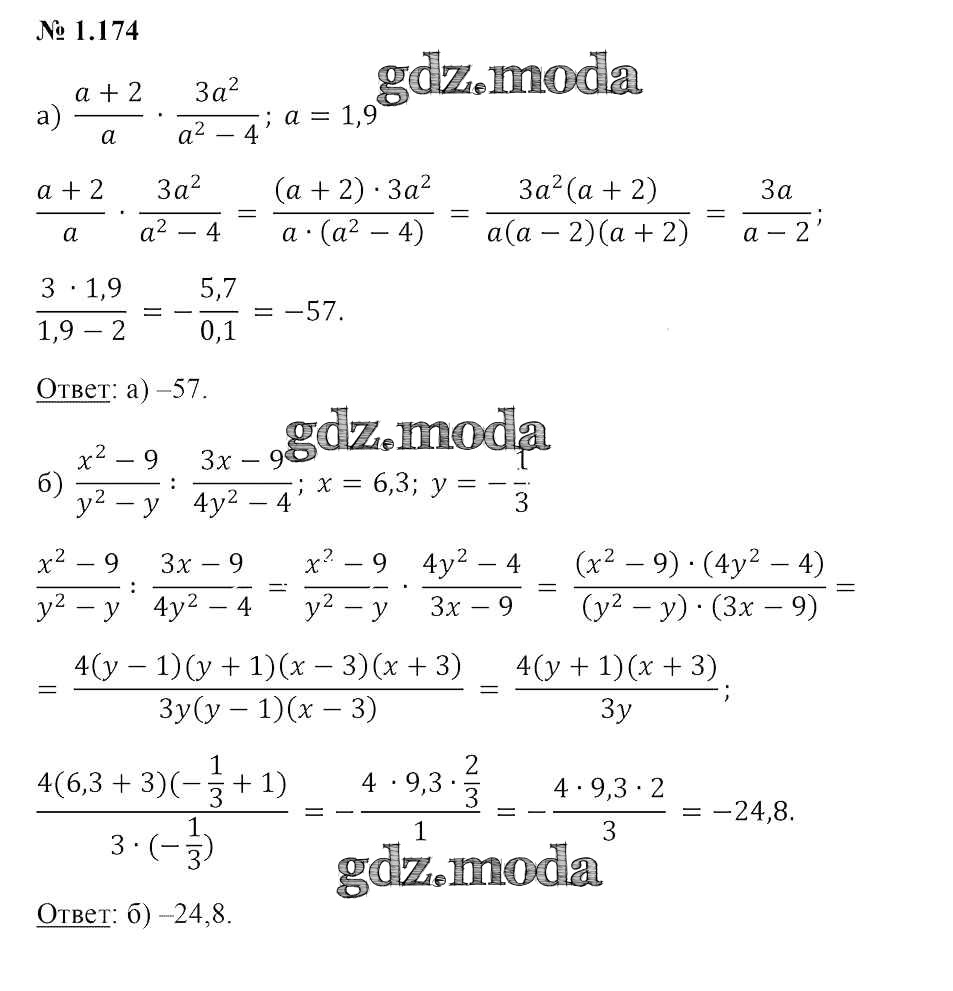 ОТВЕТ на задание № 1.174 Учебник по Алгебре 9 класс Арефьева