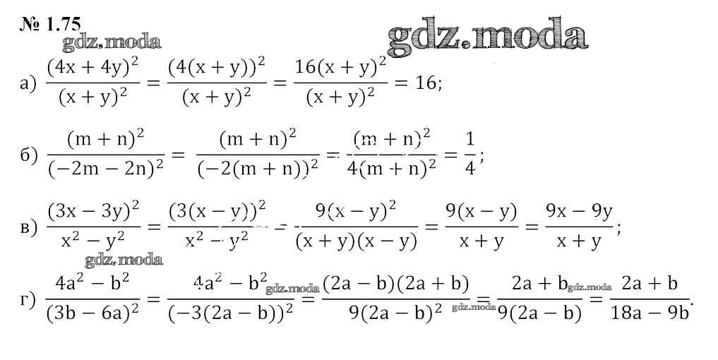 ОТВЕТ на задание № 1.75 Учебник по Алгебре 9 класс Арефьева