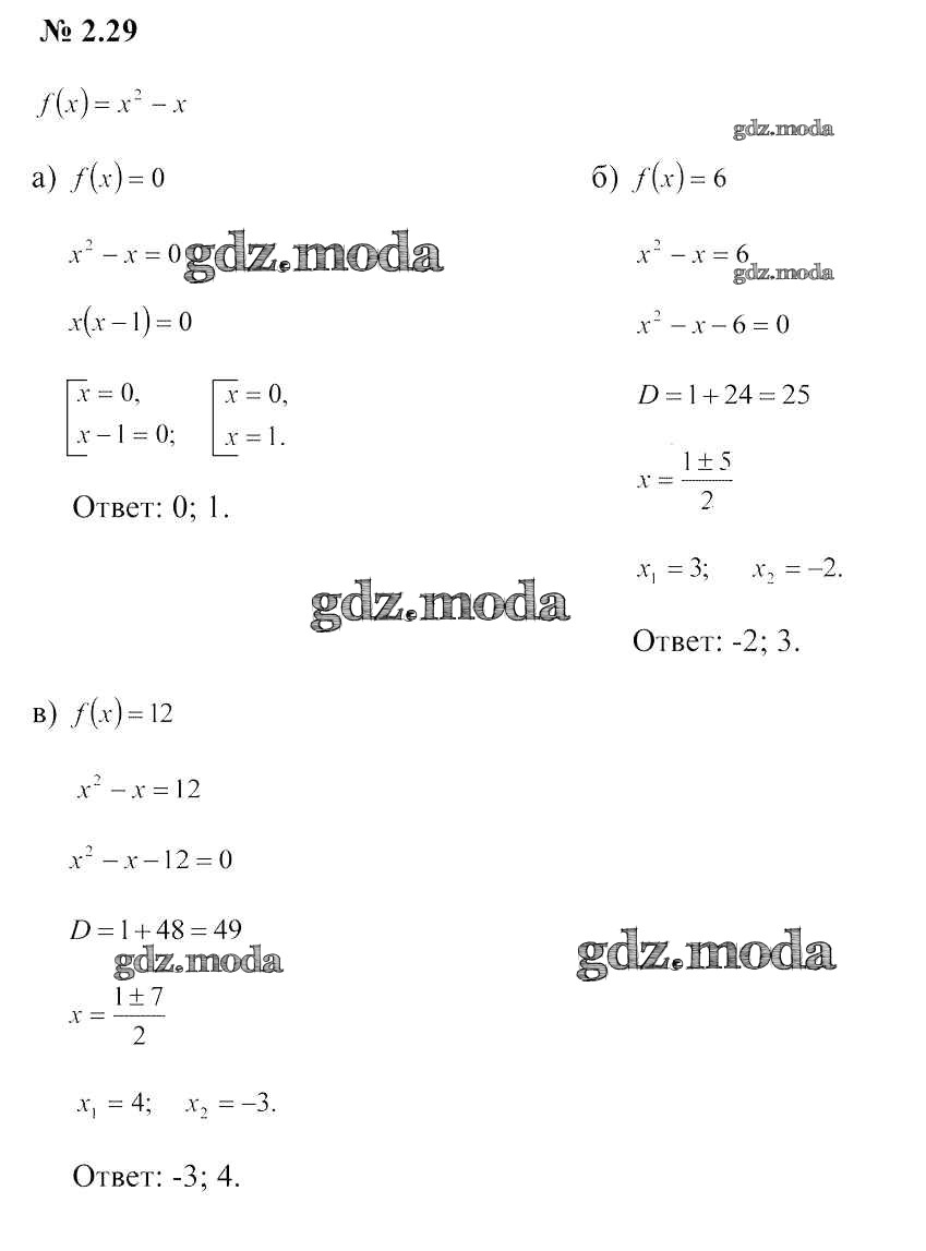 ОТВЕТ на задание № 2.29 Учебник по Алгебре 9 класс Арефьева