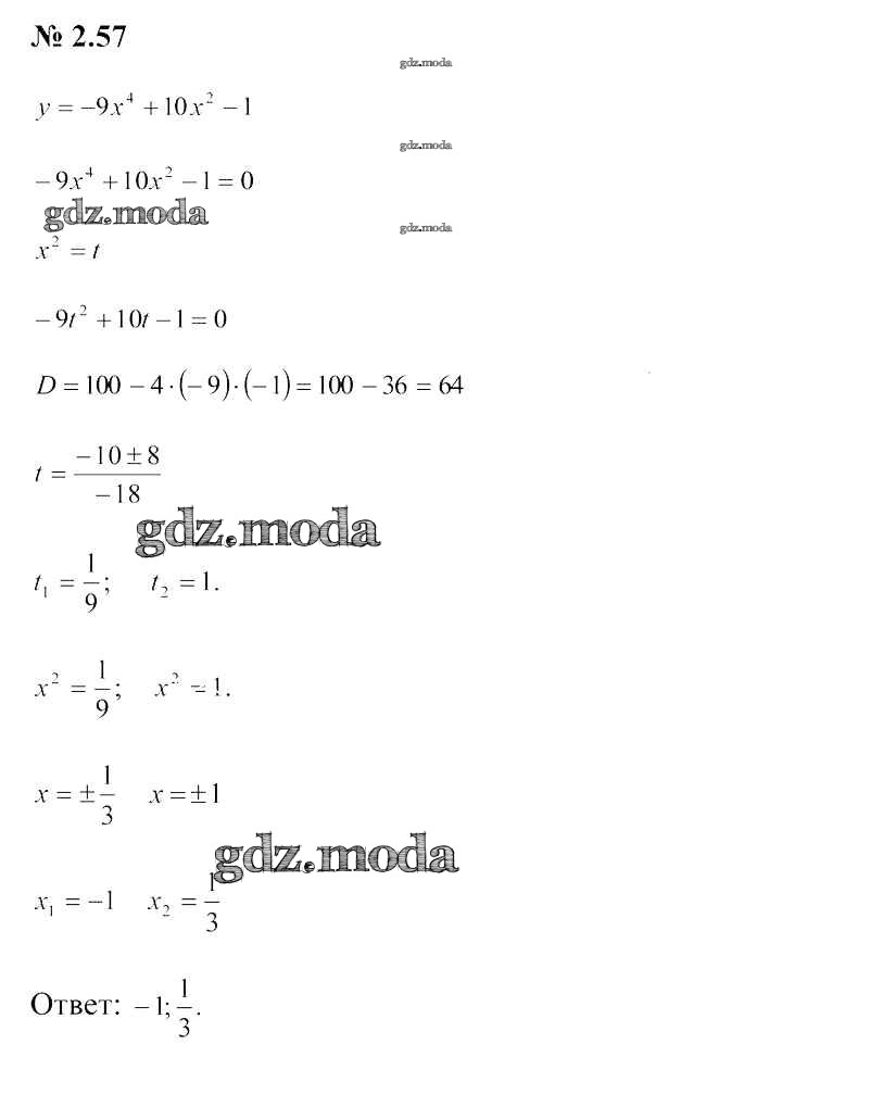 ОТВЕТ на задание № 2.57 Учебник по Алгебре 9 класс Арефьева