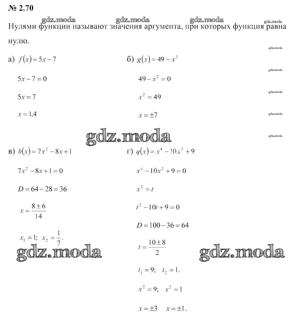 ОТВЕТ на задание № 2.70 Учебник по Алгебре 9 класс Арефьева