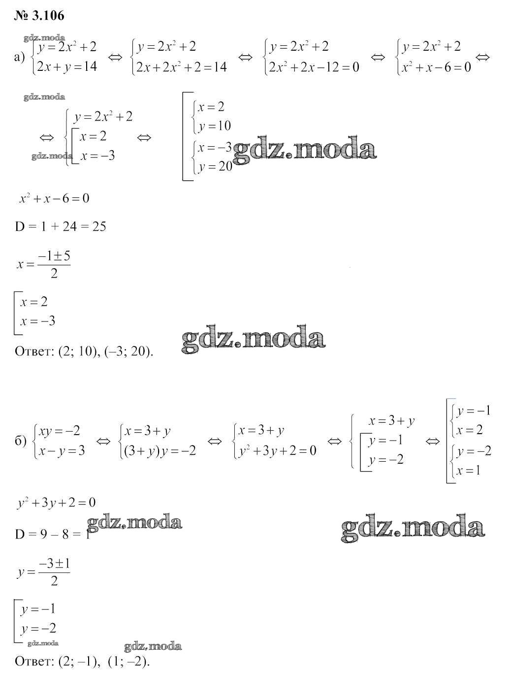 ОТВЕТ на задание № 3.106 Учебник по Алгебре 9 класс Арефьева