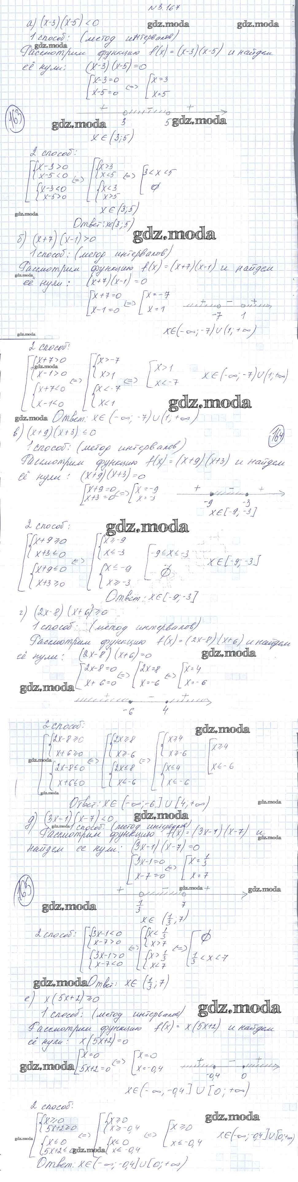 ОТВЕТ на задание № 3.167 Учебник по Алгебре 9 класс Арефьева