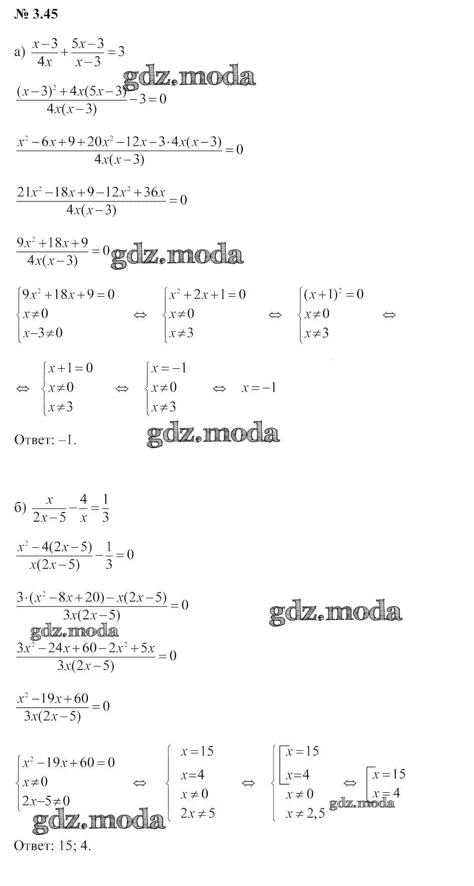 ОТВЕТ на задание № 3.45 Учебник по Алгебре 9 класс Арефьева