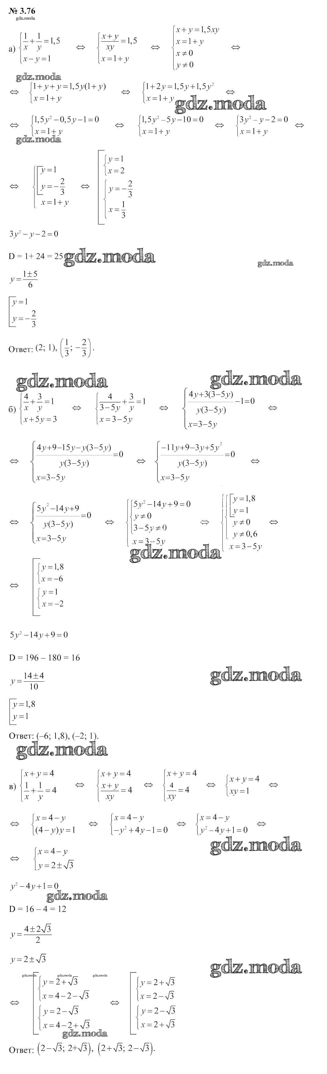 ОТВЕТ на задание № 3.76 Учебник по Алгебре 9 класс Арефьева