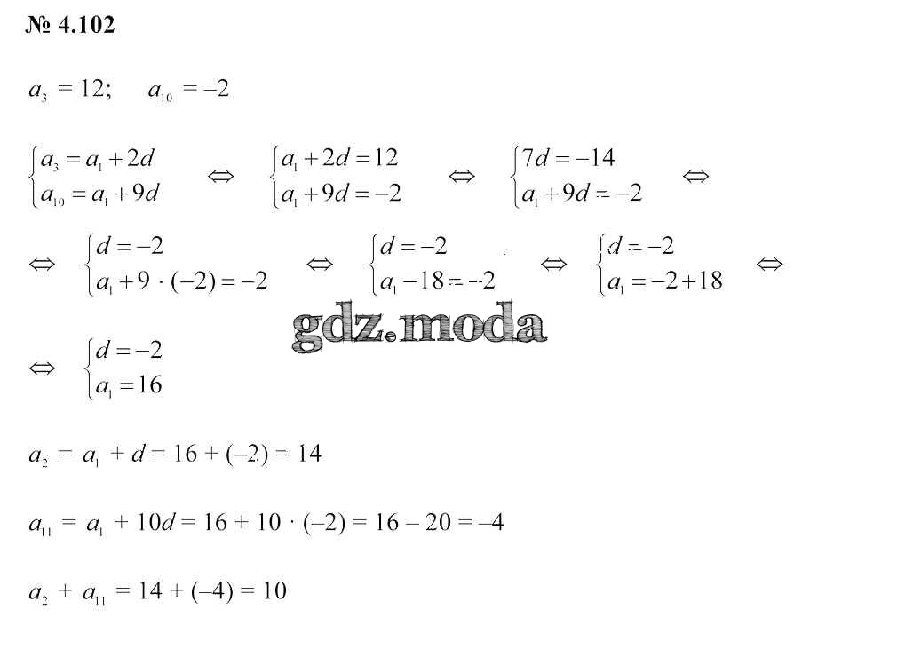 ОТВЕТ на задание № 4.102 Учебник по Алгебре 9 класс Арефьева