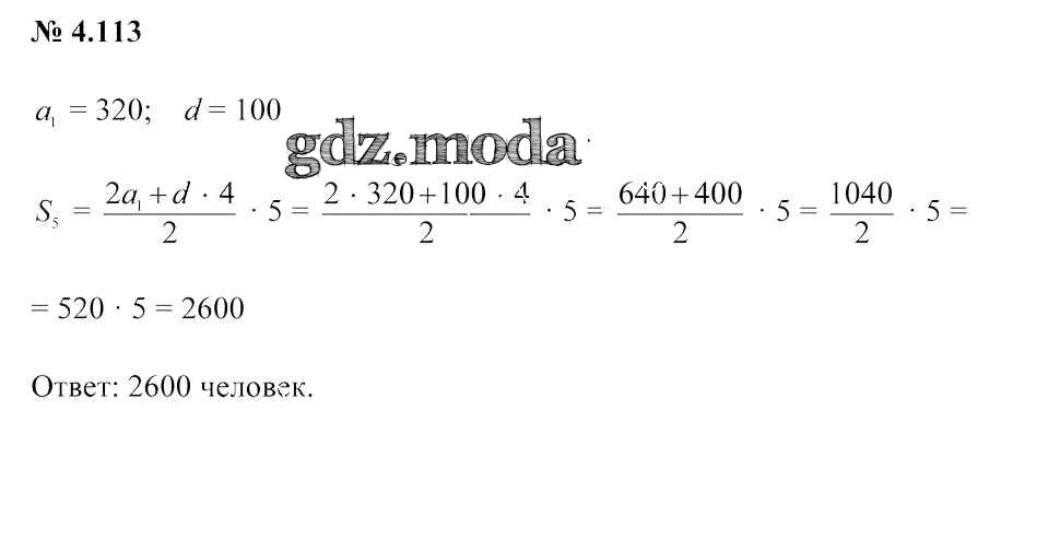ОТВЕТ на задание № 4.113 Учебник по Алгебре 9 класс Арефьева