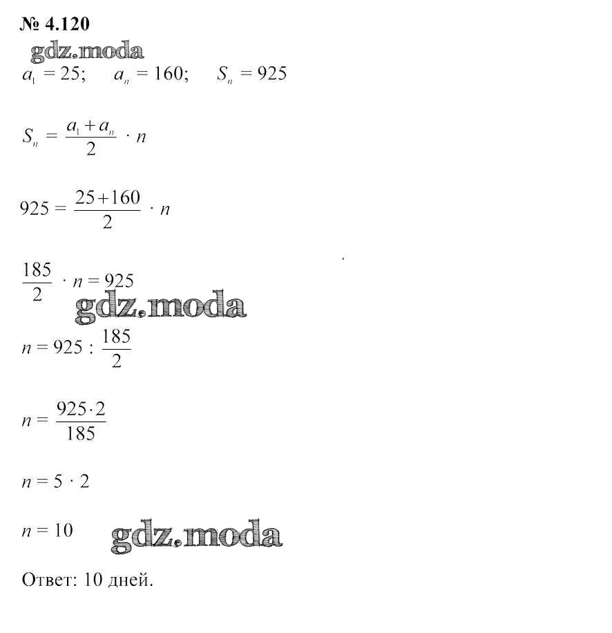 ОТВЕТ на задание № 4.120 Учебник по Алгебре 9 класс Арефьева