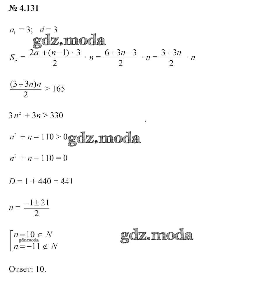 ОТВЕТ на задание № 4.131 Учебник по Алгебре 9 класс Арефьева