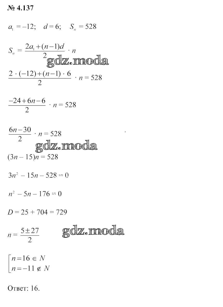 ОТВЕТ на задание № 4.137 Учебник по Алгебре 9 класс Арефьева