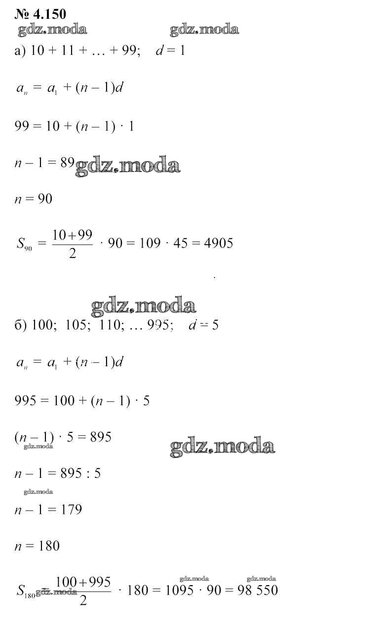 ОТВЕТ на задание № 4.150 Учебник по Алгебре 9 класс Арефьева