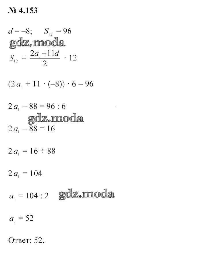ОТВЕТ на задание № 4.153 Учебник по Алгебре 9 класс Арефьева