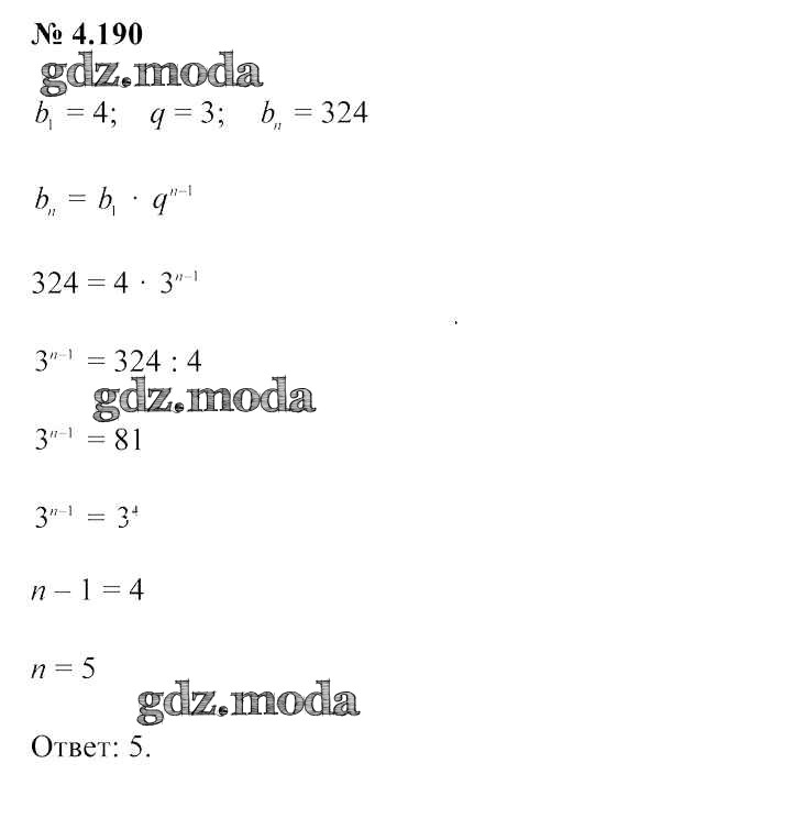 ОТВЕТ на задание № 4.190 Учебник по Алгебре 9 класс Арефьева
