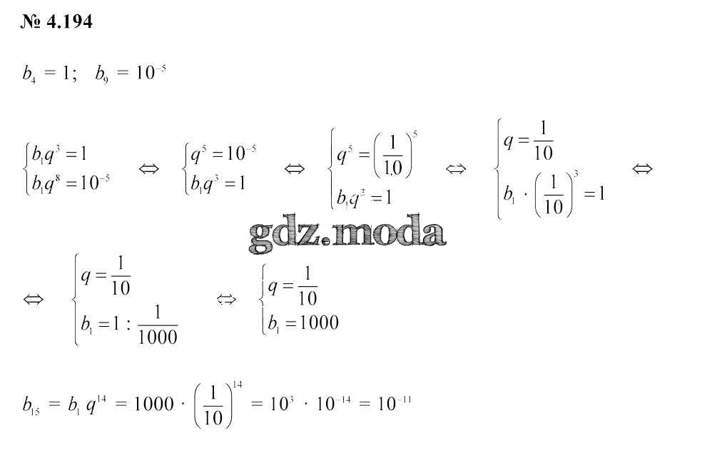 ОТВЕТ на задание № 4.194 Учебник по Алгебре 9 класс Арефьева
