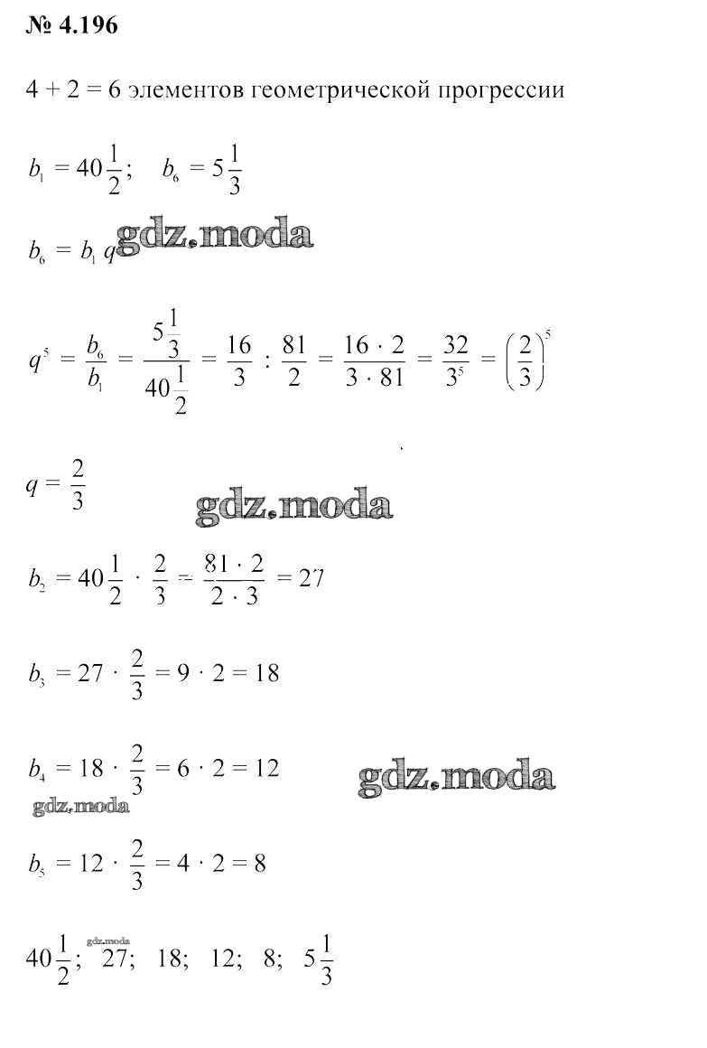 ОТВЕТ на задание № 4.196 Учебник по Алгебре 9 класс Арефьева