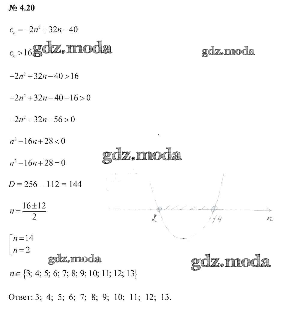 ОТВЕТ на задание № 4.20 Учебник по Алгебре 9 класс Арефьева