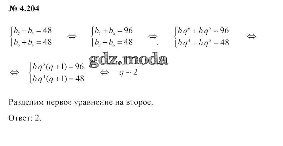 ОТВЕТ на задание № 4.204 Учебник по Алгебре 9 класс Арефьева