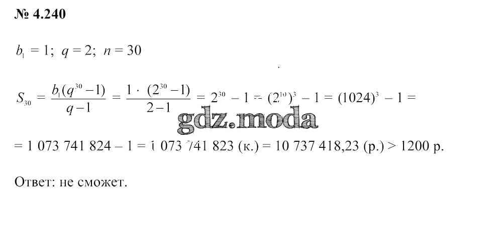 ОТВЕТ на задание № 4.240 Учебник по Алгебре 9 класс Арефьева