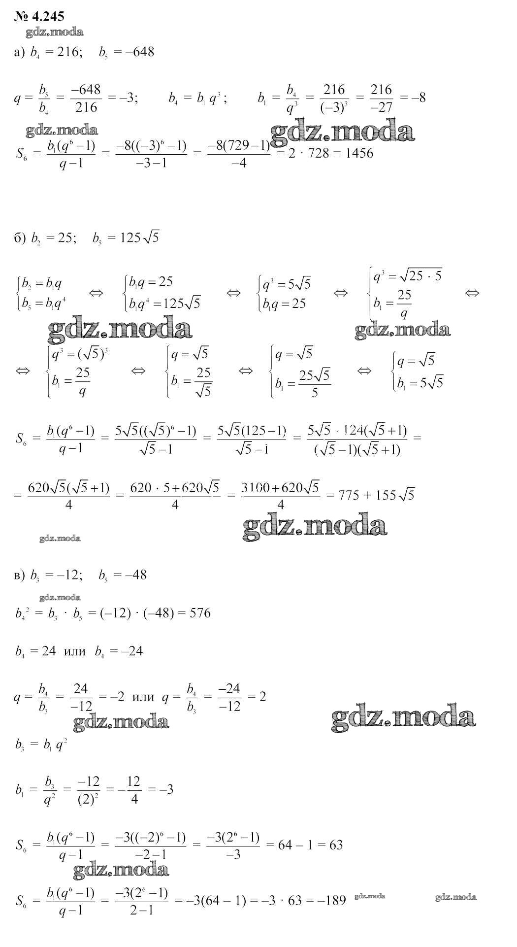 ОТВЕТ на задание № 4.245 Учебник по Алгебре 9 класс Арефьева