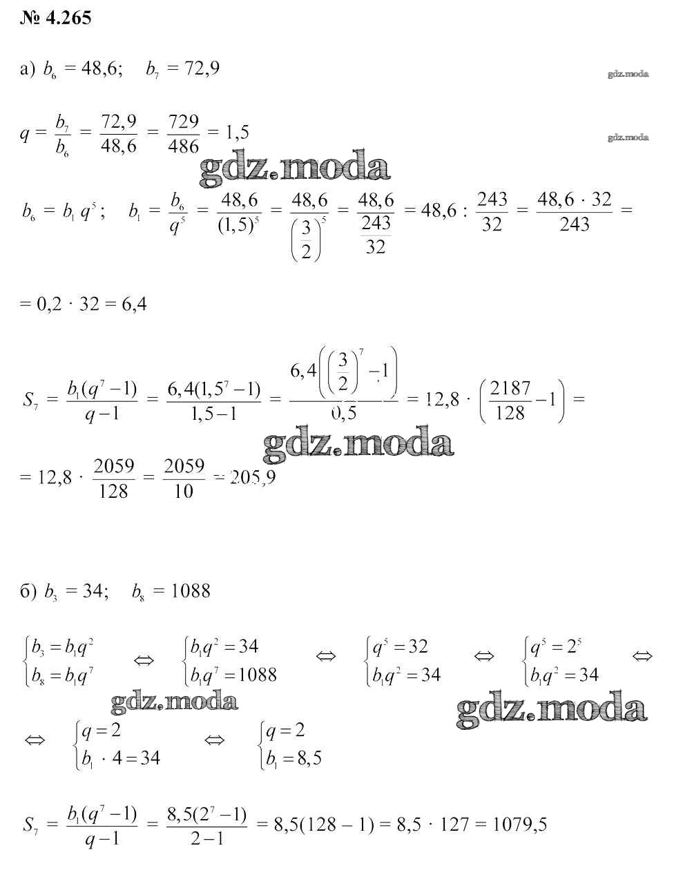 ОТВЕТ на задание № 4.265 Учебник по Алгебре 9 класс Арефьева