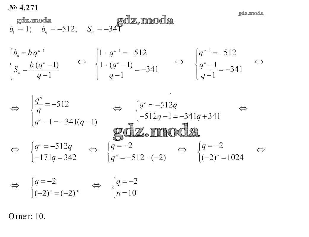 ОТВЕТ на задание № 4.271 Учебник по Алгебре 9 класс Арефьева