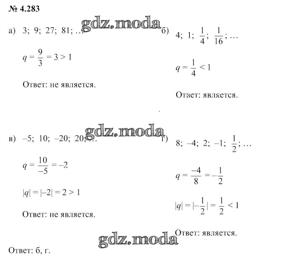ОТВЕТ на задание № 4.283 Учебник по Алгебре 9 класс Арефьева