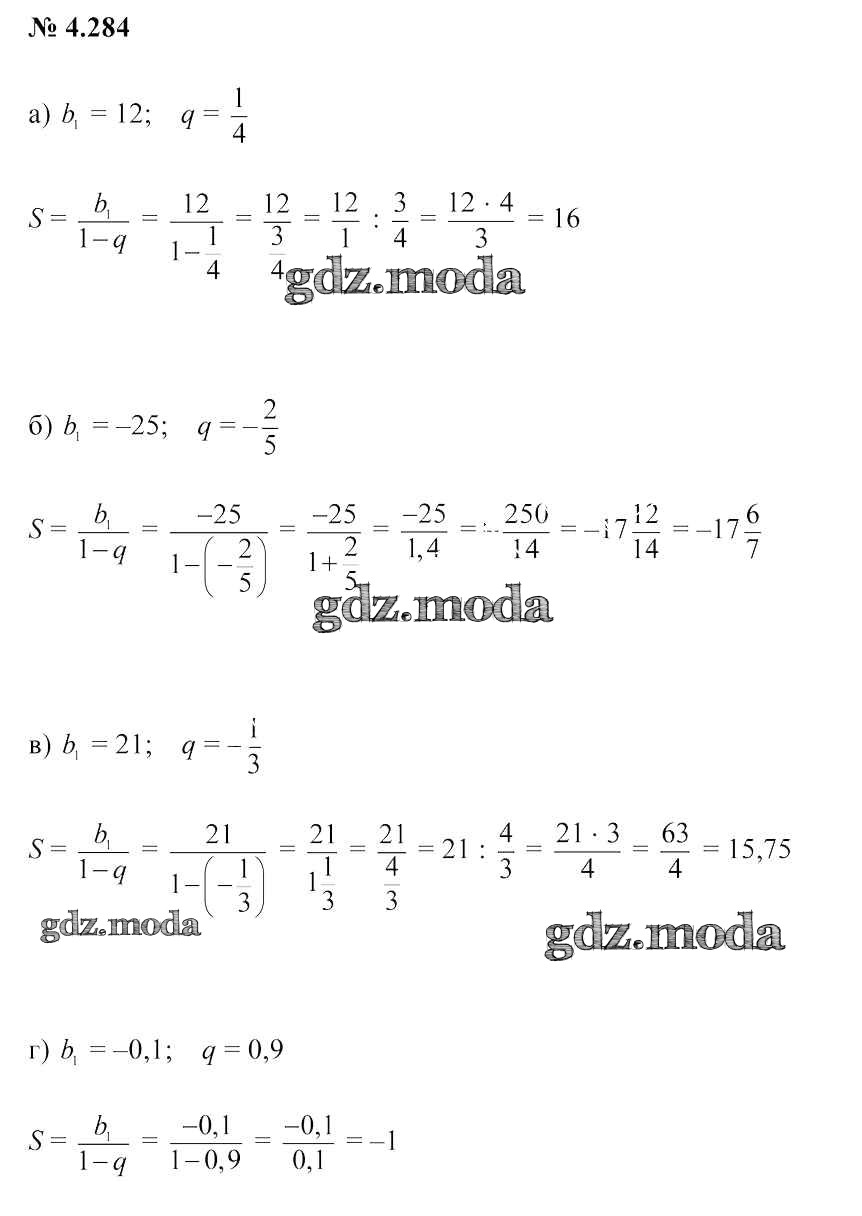 ОТВЕТ на задание № 4.284 Учебник по Алгебре 9 класс Арефьева