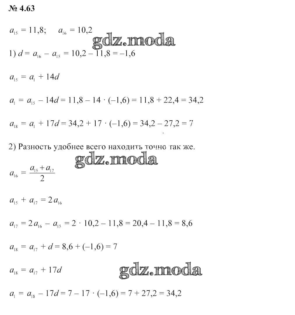 ОТВЕТ на задание № 4.63 Учебник по Алгебре 9 класс Арефьева