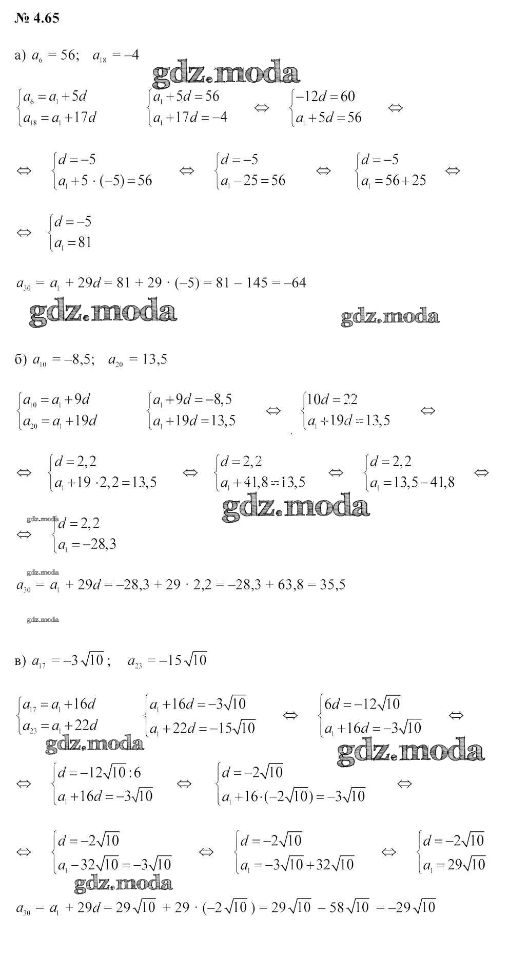 ОТВЕТ на задание № 4.65 Учебник по Алгебре 9 класс Арефьева