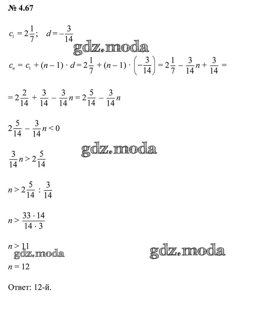 ОТВЕТ на задание № 4.67 Учебник по Алгебре 9 класс Арефьева
