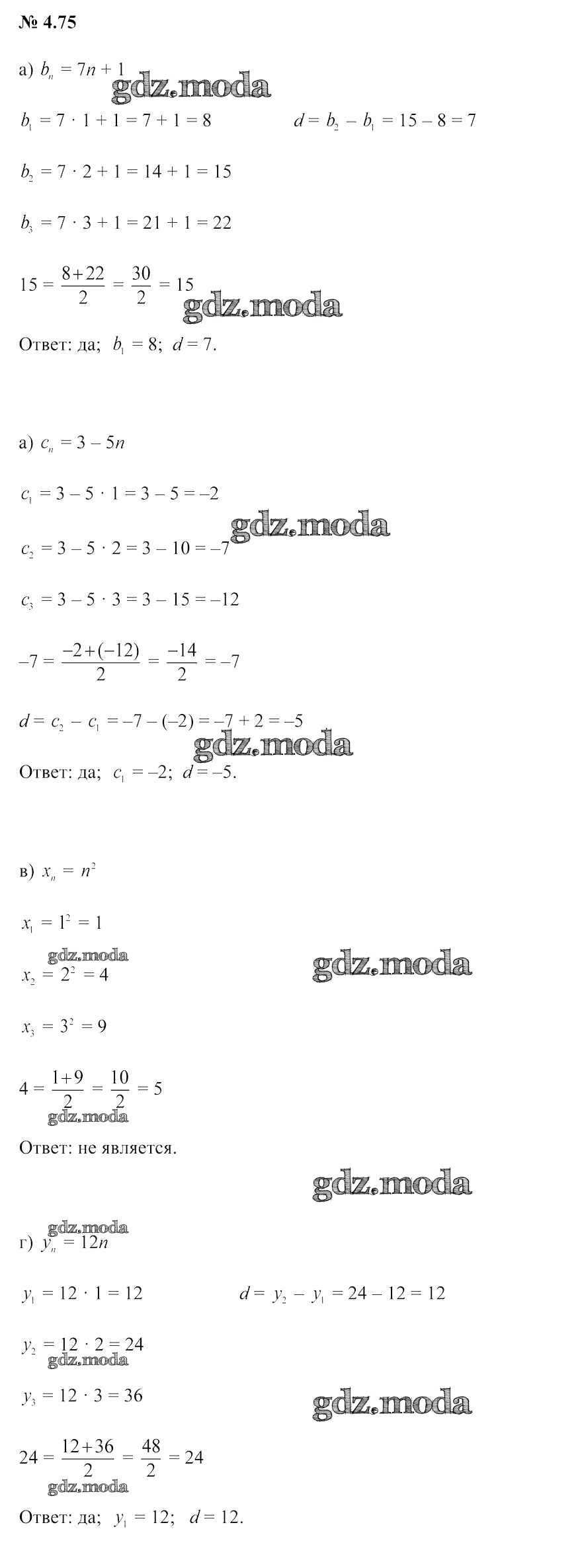 ОТВЕТ на задание № 4.75 Учебник по Алгебре 9 класс Арефьева