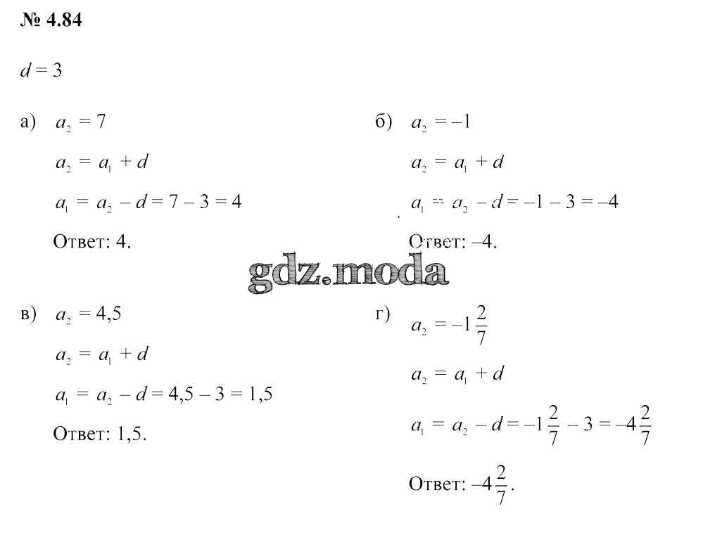 ОТВЕТ на задание № 4.84 Учебник по Алгебре 9 класс Арефьева
