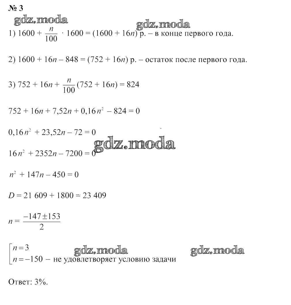 ОТВЕТ на задание № 3 Учебник по Алгебре 9 класс Арефьева