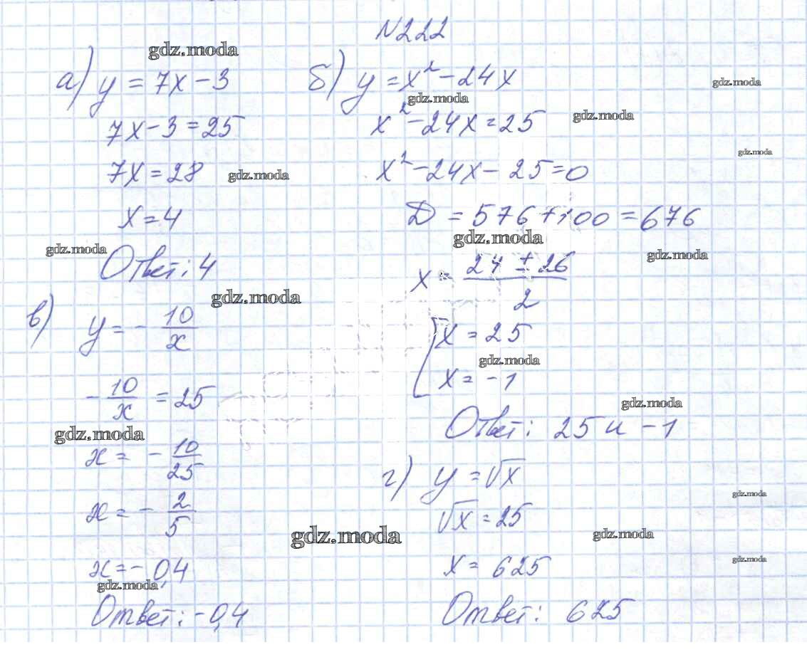 ОТВЕТ на задание № 222 Учебник по Алгебре 9 класс Арефьева