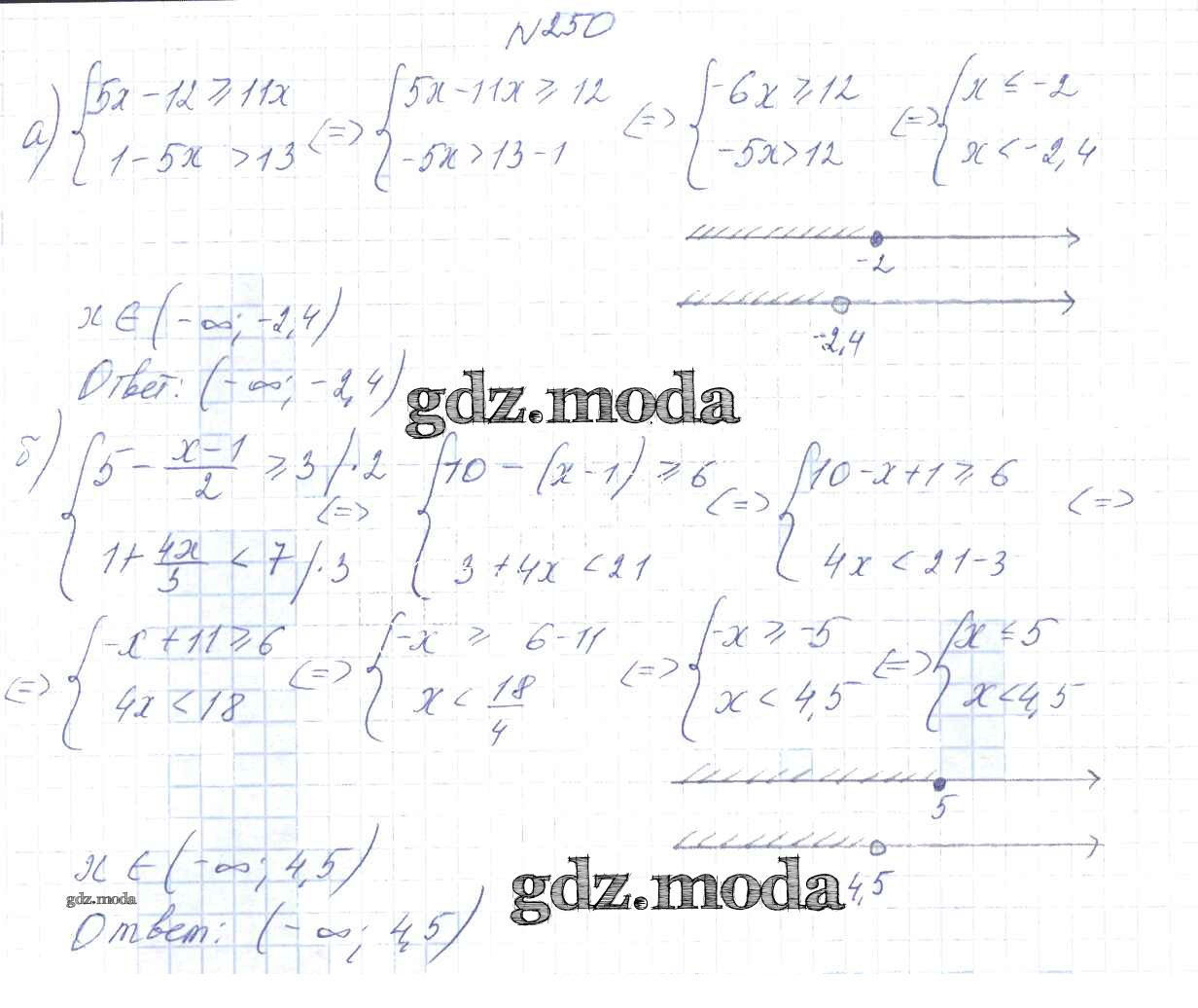 ОТВЕТ на задание № 250 Учебник по Алгебре 9 класс Арефьева
