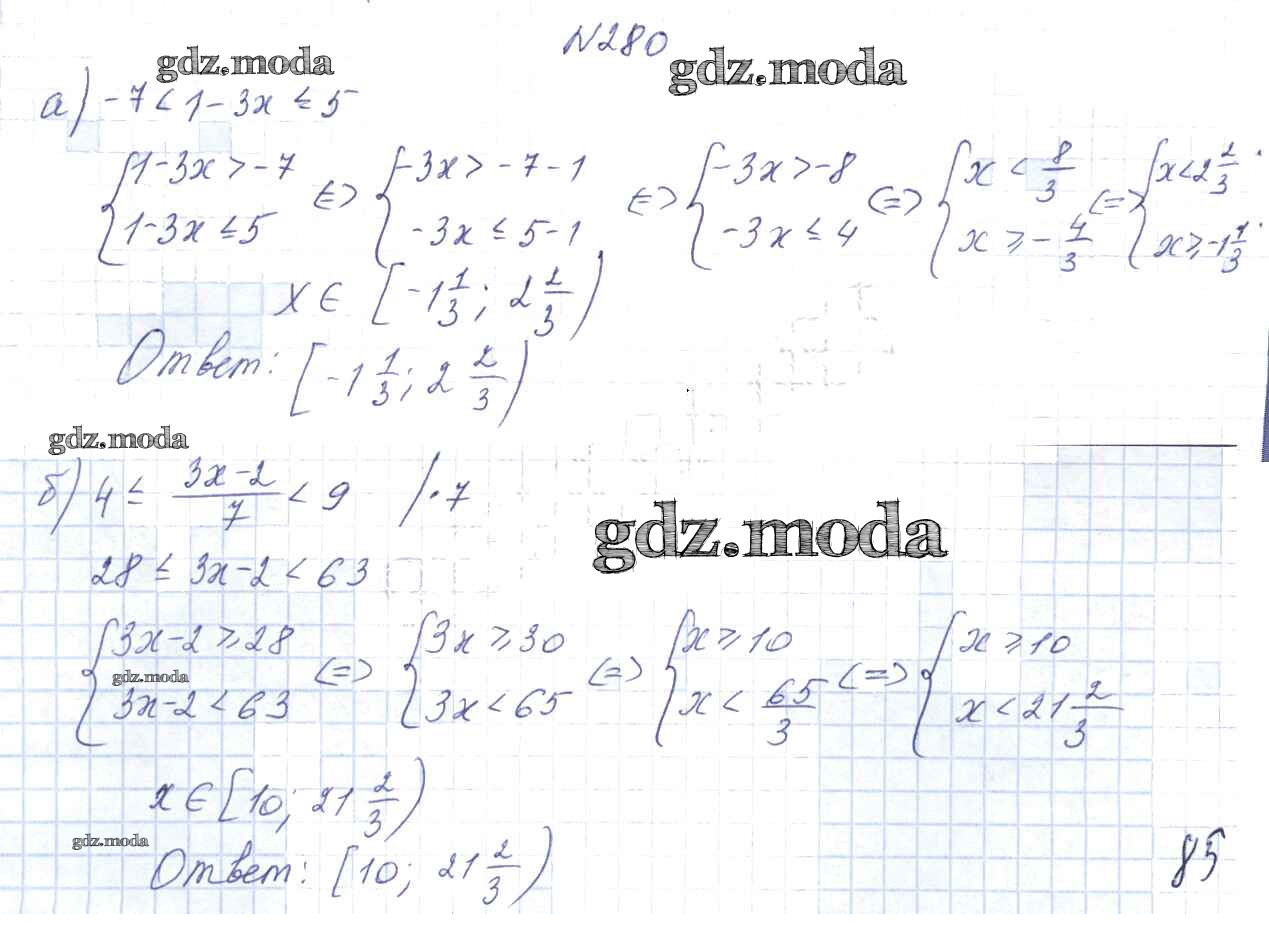 ОТВЕТ на задание № 280 Учебник по Алгебре 9 класс Арефьева