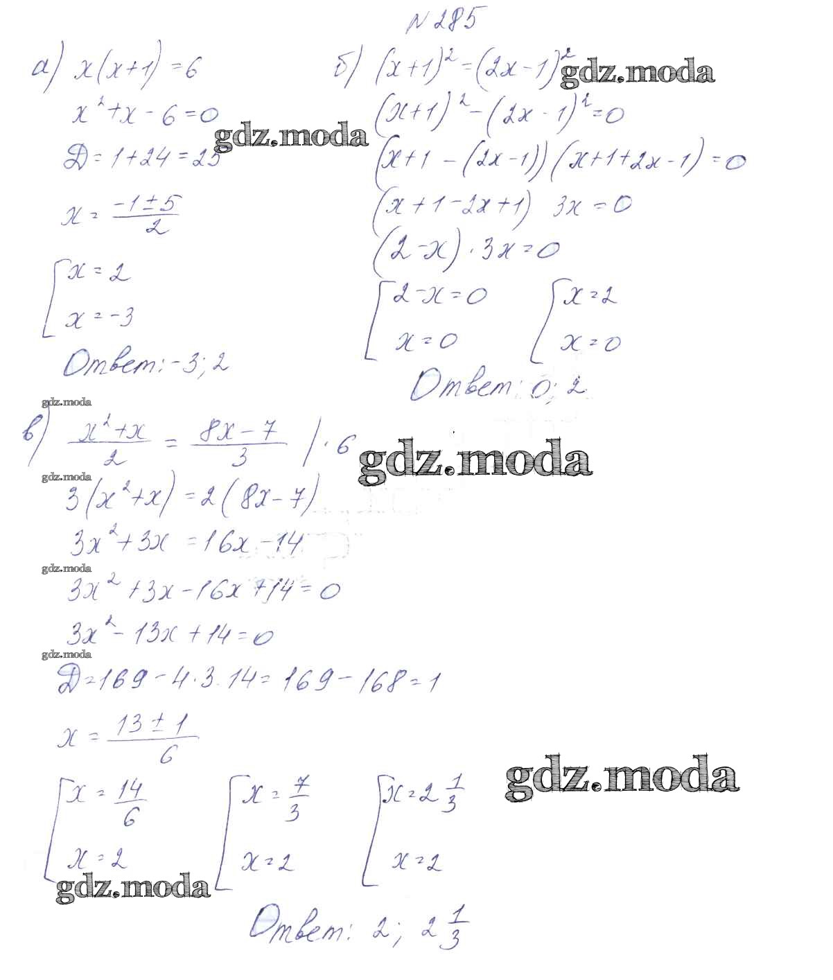 ОТВЕТ на задание № 285 Учебник по Алгебре 9 класс Арефьева