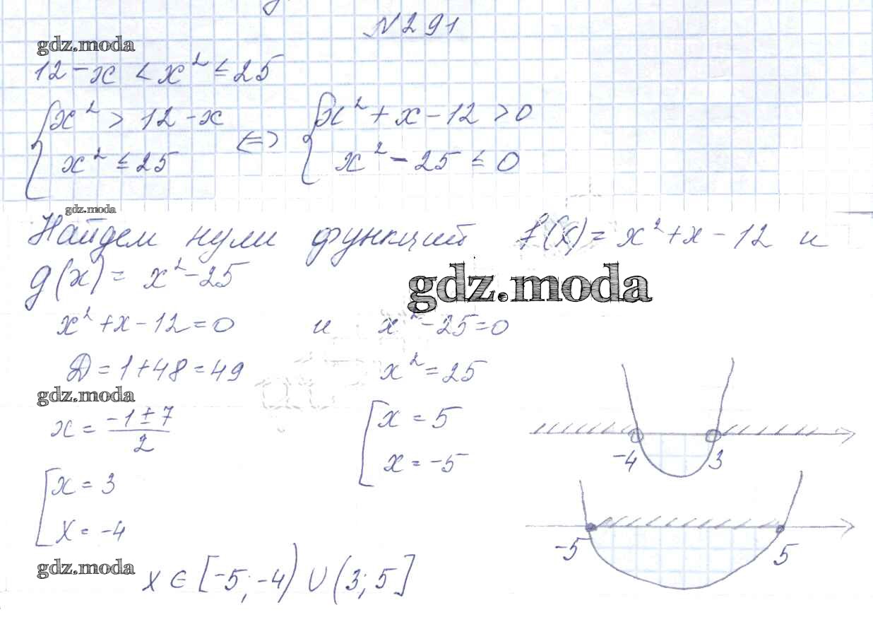 ОТВЕТ на задание № 291 Учебник по Алгебре 9 класс Арефьева