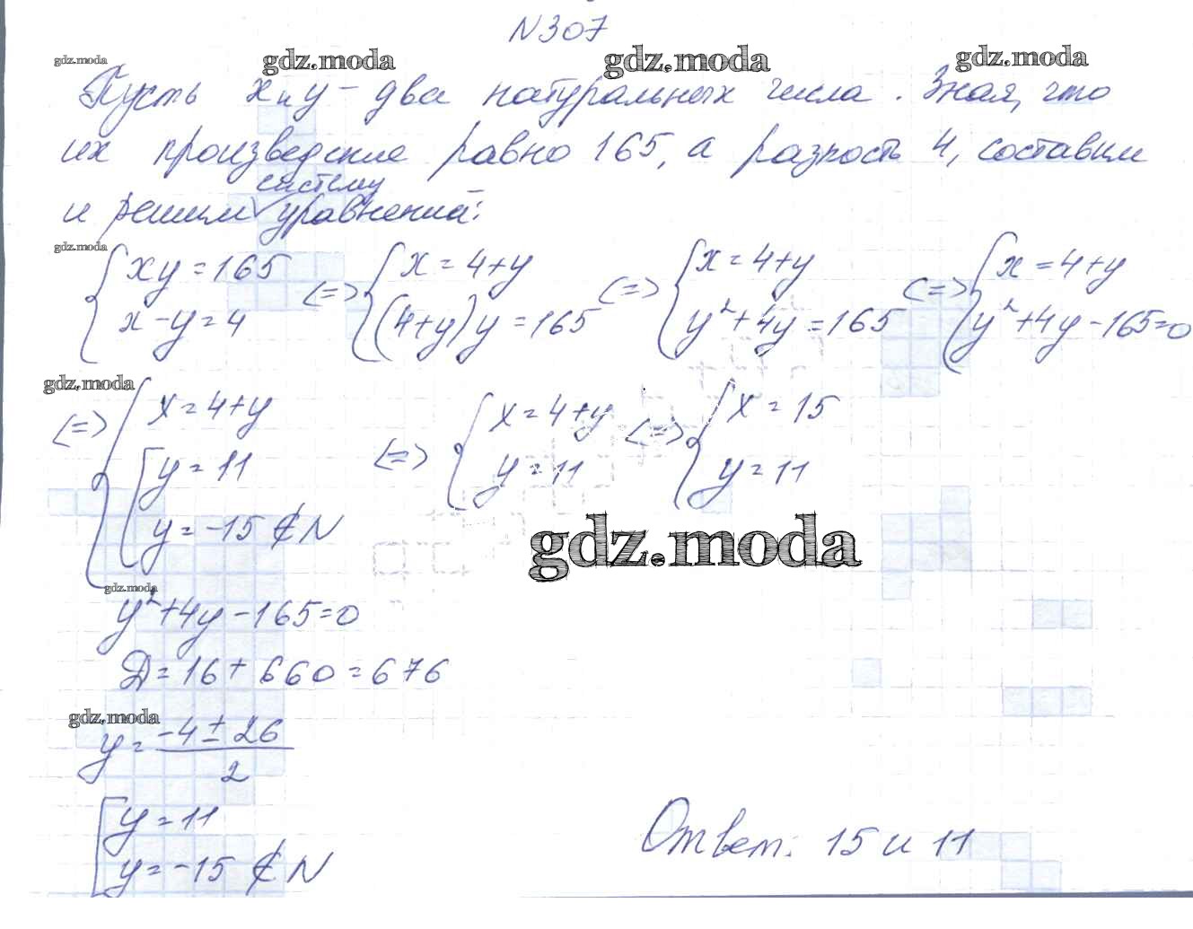 ОТВЕТ на задание № 307 Учебник по Алгебре 9 класс Арефьева