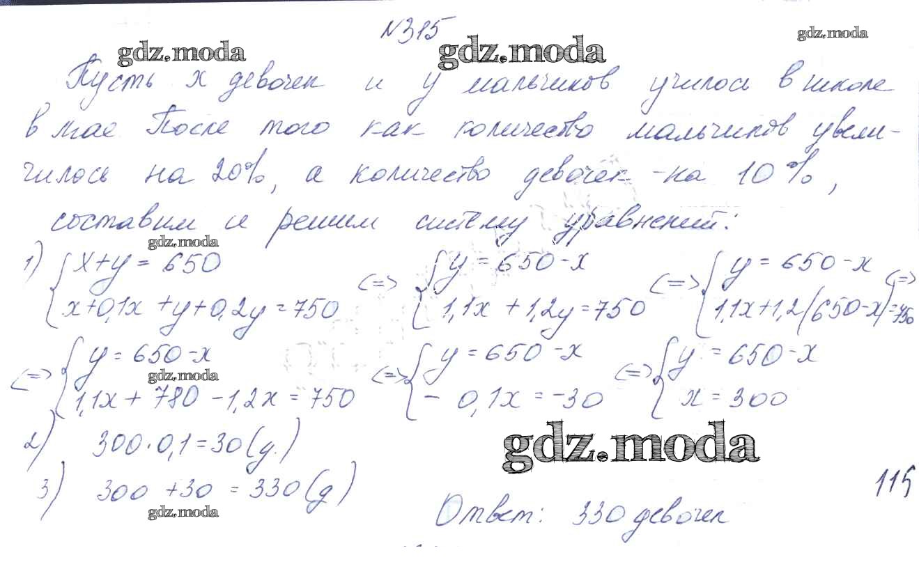 ОТВЕТ на задание № 315 Учебник по Алгебре 9 класс Арефьева