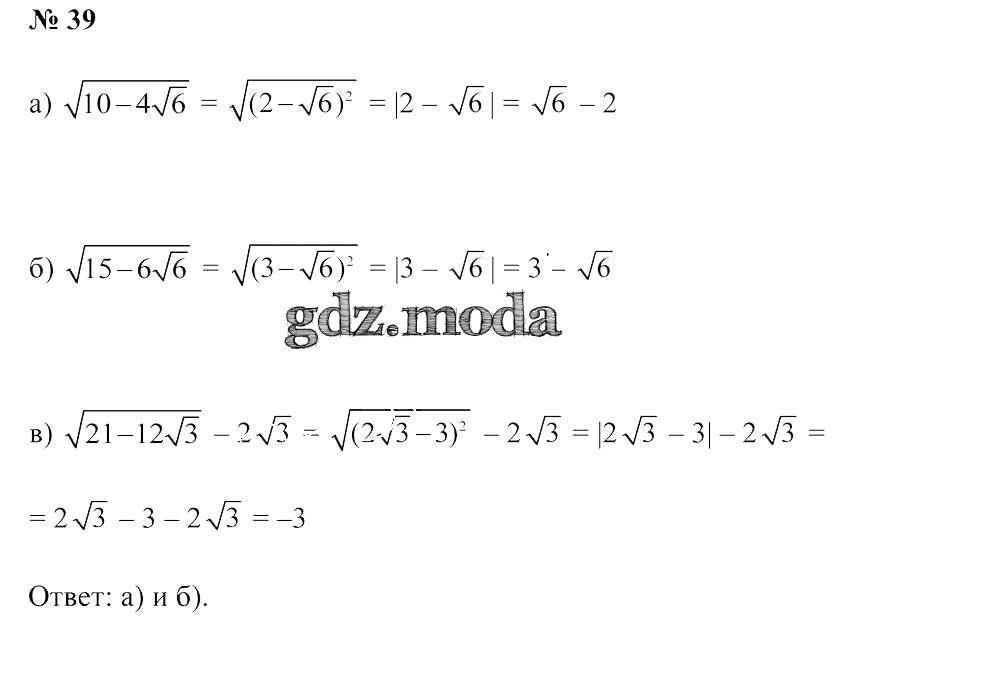 ГДЗ решение к заданию № 39 Алгебра 9 класс Арефьева И.Г. Народная асвета 2019 бесплатно на гдз.мода!
