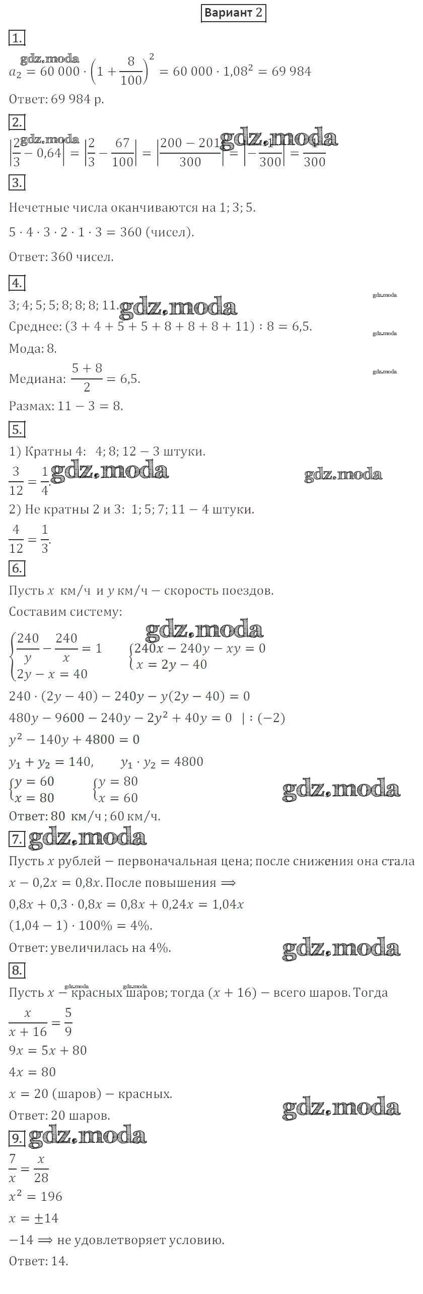 ОТВЕТ на задание № 2 Дидактические материалы по Алгебре 9 класс Мерзляк Алгоритм успеха