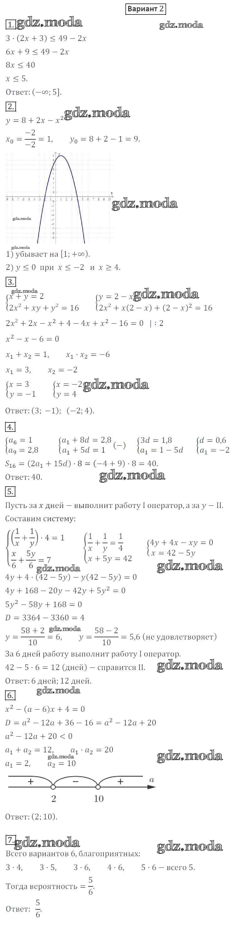 ГДЗ решение к заданию № 2 Алгебра 9 класс дидактические материалы Мерзляк А.Г. Вентана-граф 2017 ФГОС бесплатно на гдз.мода!
