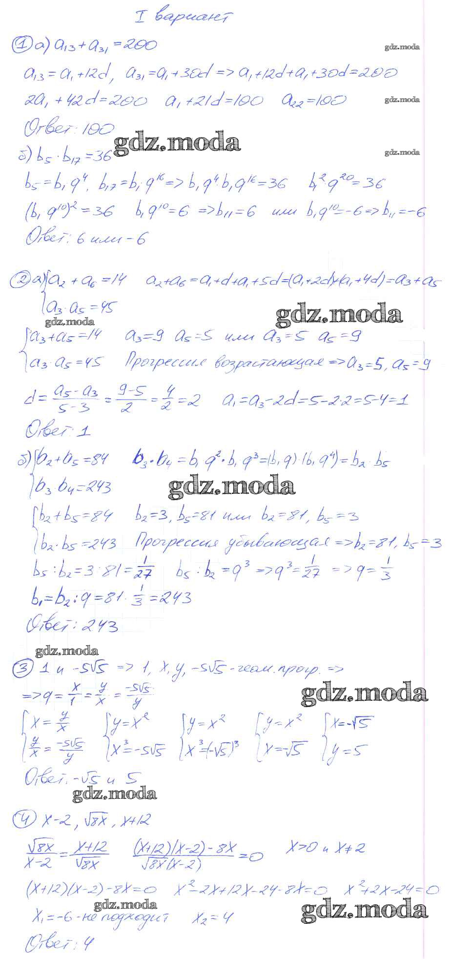 ГДЗ решение к заданию № вариант 1 Алгебра 9 класс Дидактические материалы Потапов М.К. Просвещение 2010 ФГОС бесплатно на гдз.мода!