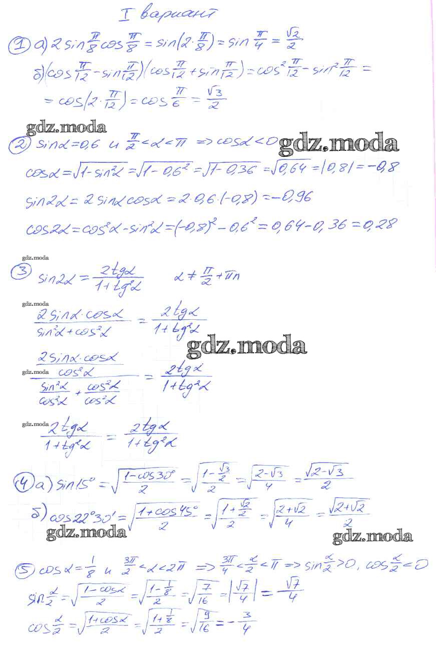 ГДЗ решение к заданию № вариант 1 Алгебра 9 класс Дидактические материалы Потапов М.К. Просвещение 2010 ФГОС бесплатно на гдз.мода!