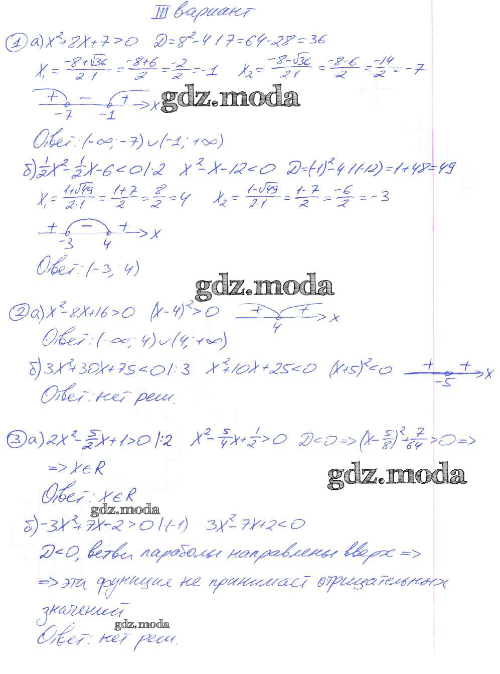 ГДЗ решение к заданию № вариант 3 Алгебра 9 класс Дидактические материалы Потапов М.К. Просвещение 2010 ФГОС бесплатно на гдз.мода!