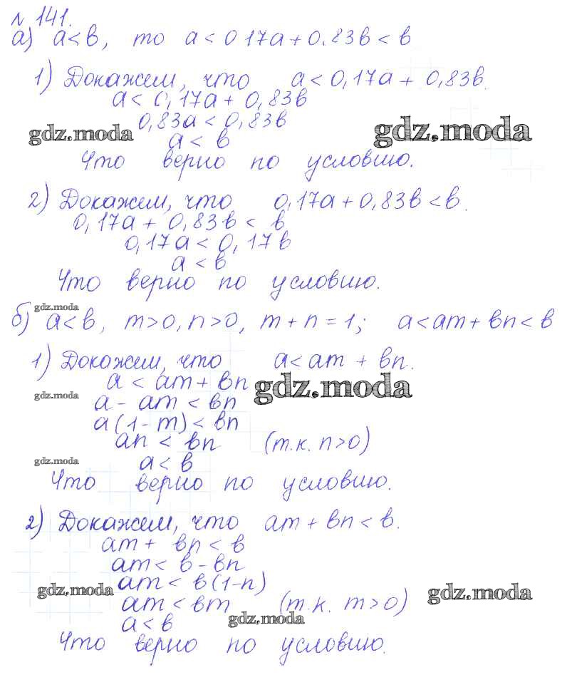 ОТВЕТ на задание № 141 Учебник по Алгебре 9 класс Дорофеев