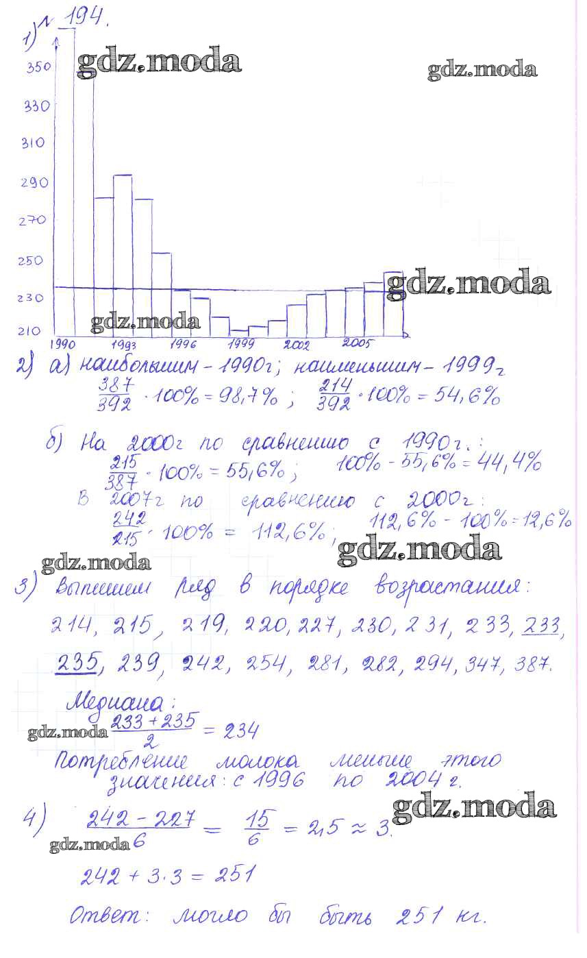 ОТВЕТ на задание № 194 Учебник по Алгебре 9 класс Дорофеев
